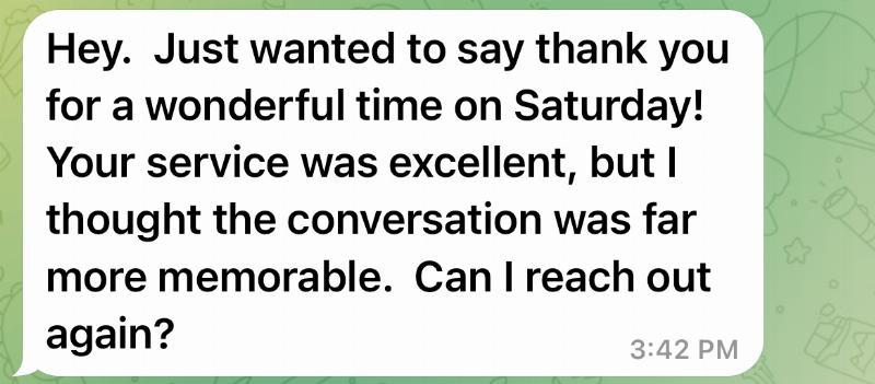 *im very enthusiastic about the service I provide, and you will never feel rushed.